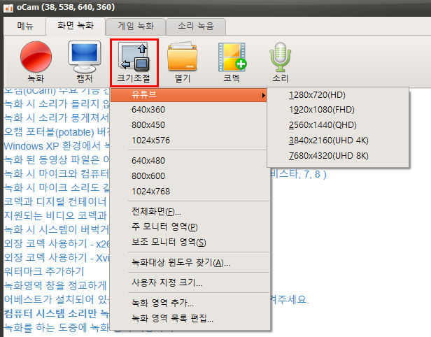 오캠 사용법 및 다운로드링크 - PC화면 녹화의 최강자