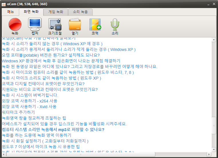 이상으로 개인적인 화면 캡처 프로그램 최강이라고 생각하는 오캠에 관한 짧은 소개 및 사용법이었습니다.