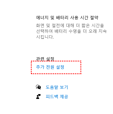 우측이나 하단을 보면 추가 전원 설정이라는 메뉴가 있습니다.