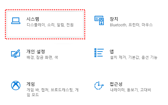 다양한 설정이 보이는데요 여기서 시스템에 들어갑니다.